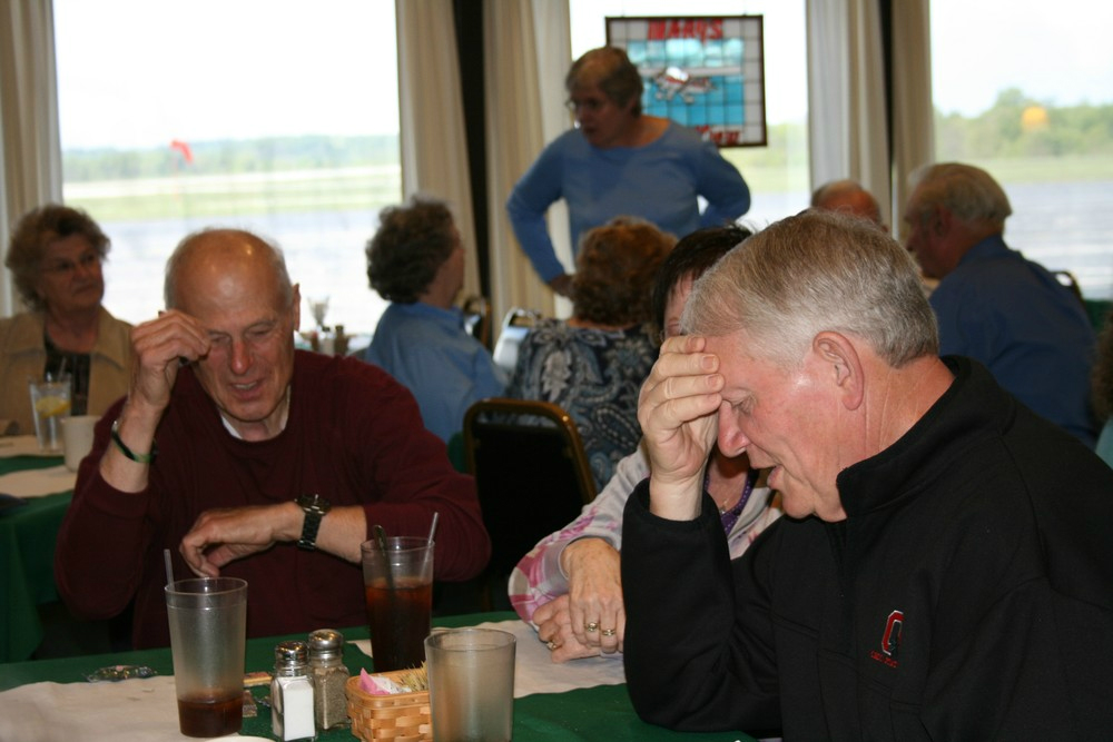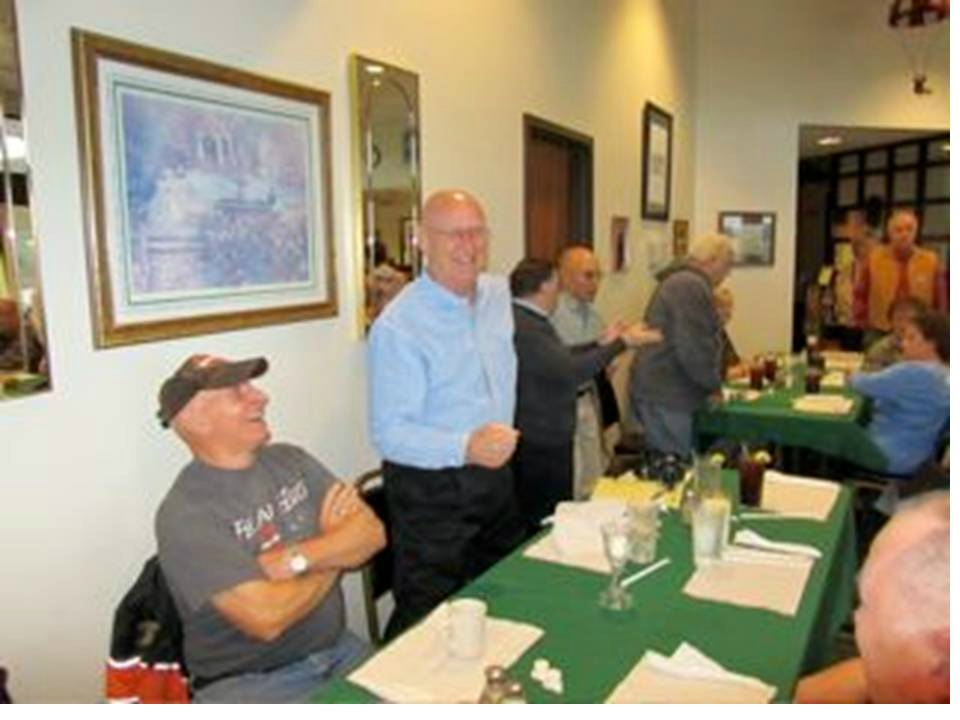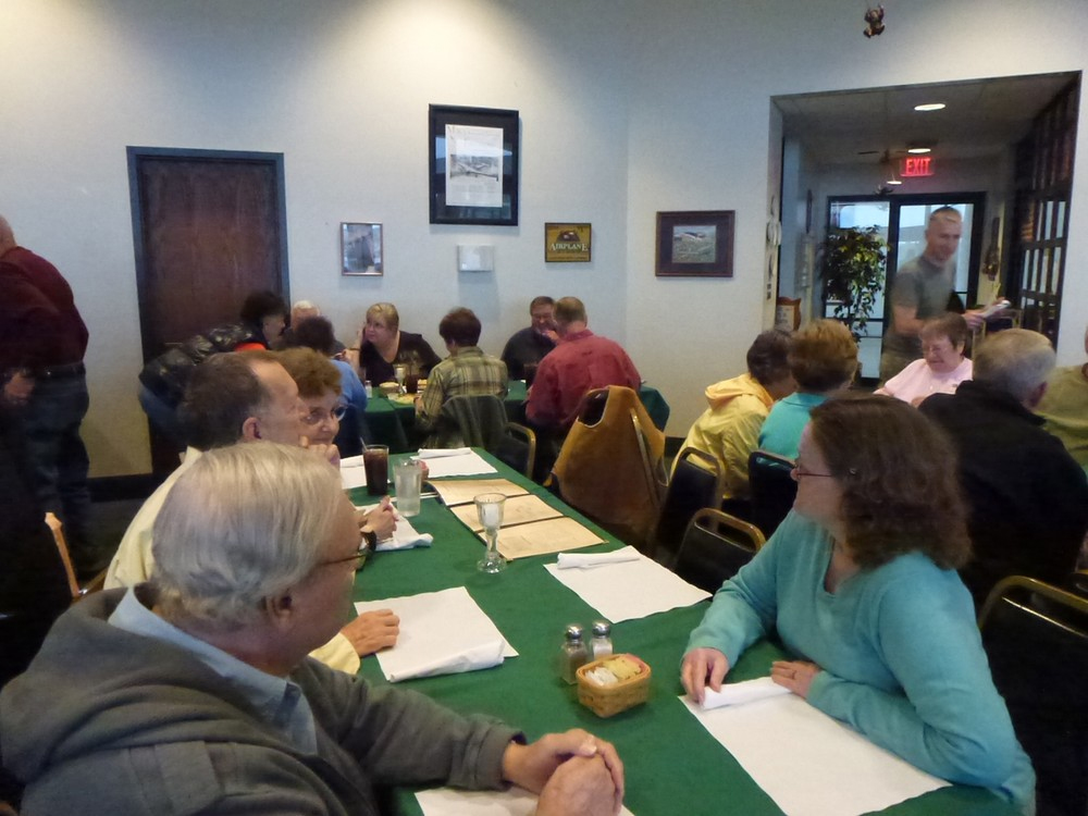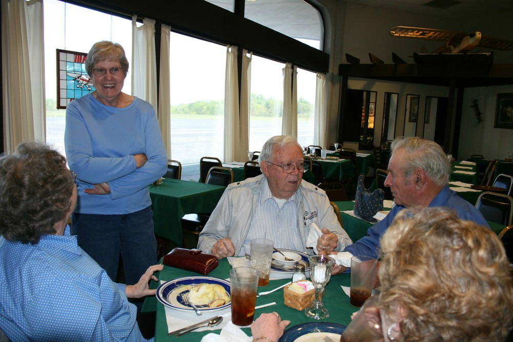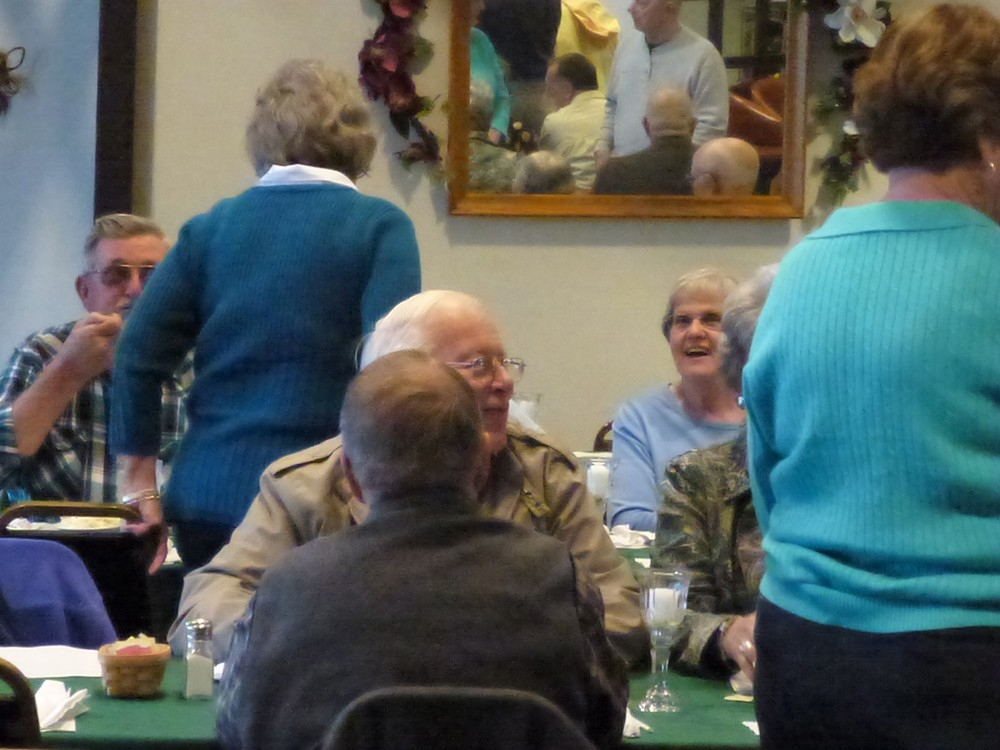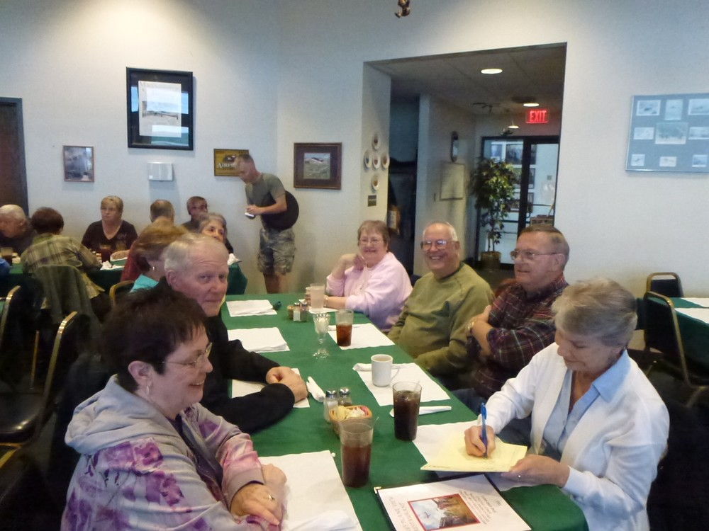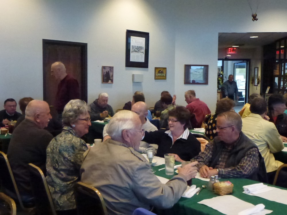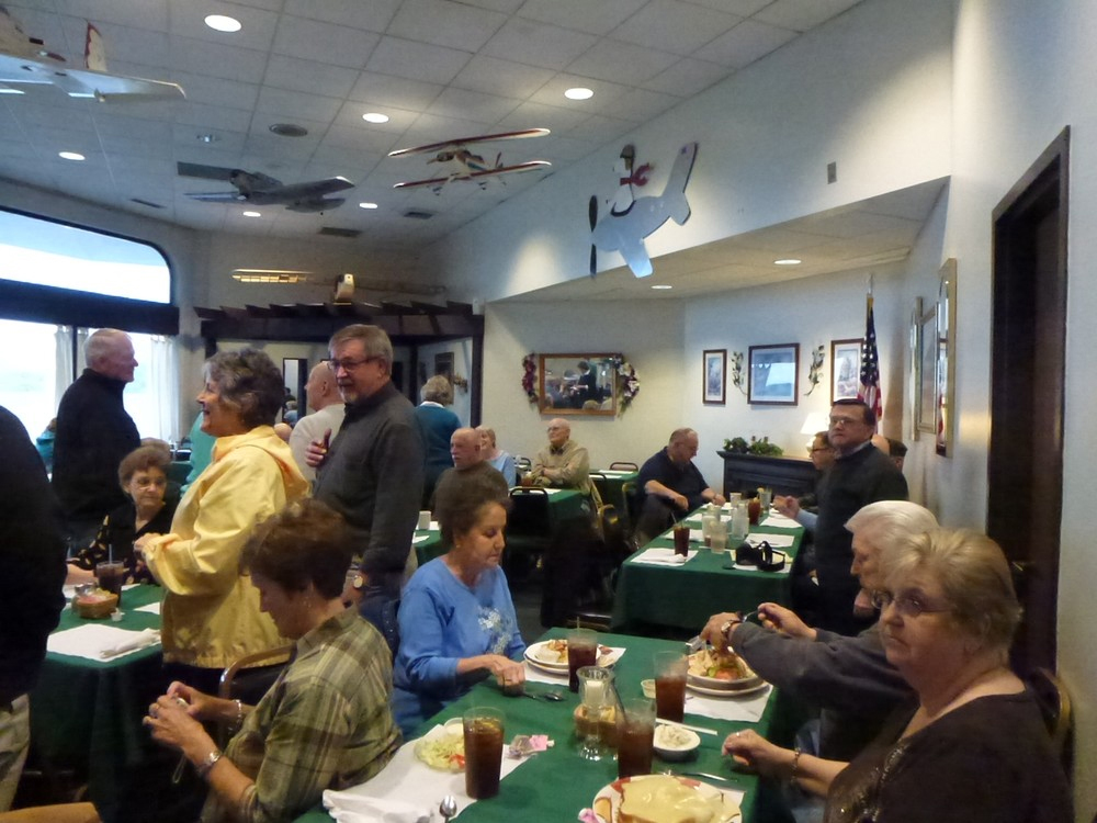 There is an old quote saying that "you can never go home again". This was partially debunked at a luncheon held in Marietta at Mary's Plane View on Saturday April 28th 2012. At this monthly get together there were a number of out of town classmates including: John Gerken, Chuck Mooney and some classmates not seen for quite a while including: Bob Thomas, John Beihl, Josephine Randolph, Dave Sturbois, Janet Newlon. The total attendance was 47 people and the time was just not long enough but everyone had a great time enjoying seeing lifelong friends again for a short time.